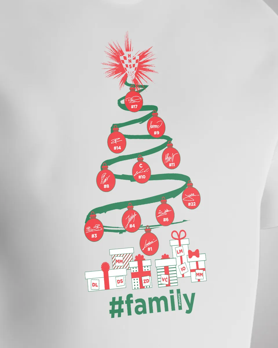 Revive the Christmas magic with our special short-sleeved shirt that seamlessly complements the line of long-sleeved shirts. The pattern on the chest showcases a beautifully stylized Christmas tree, where baubles align like players in formation of our strongest Croatian national football team.