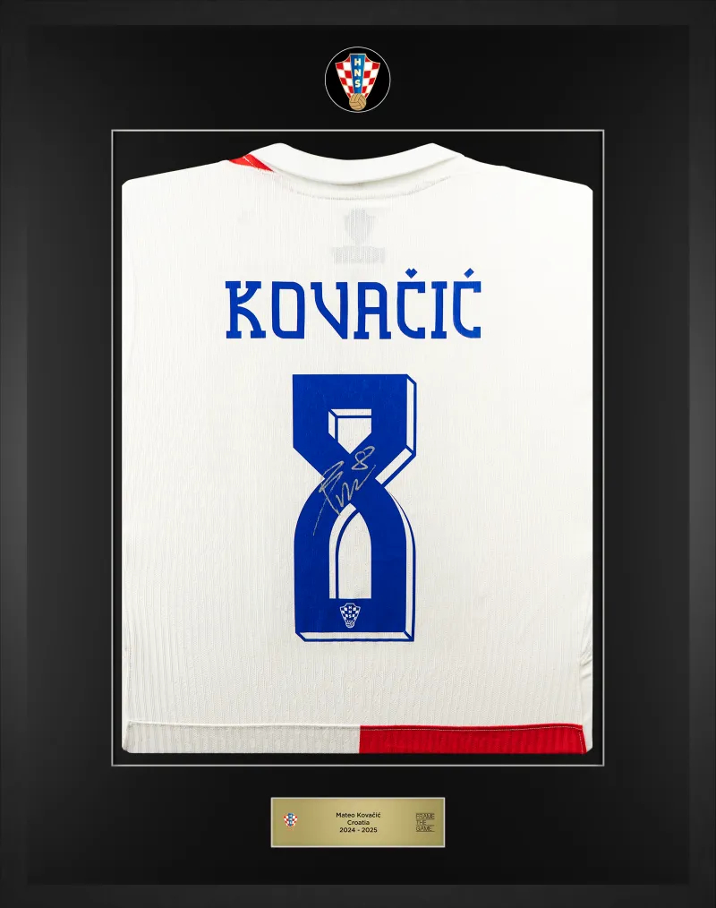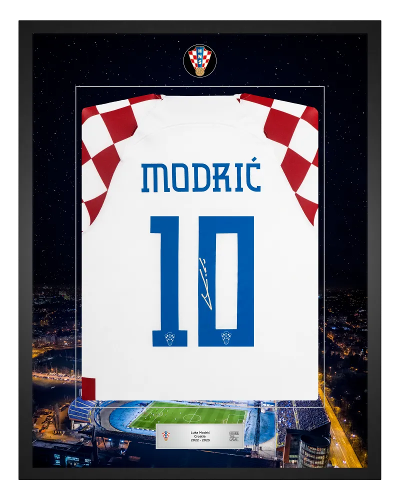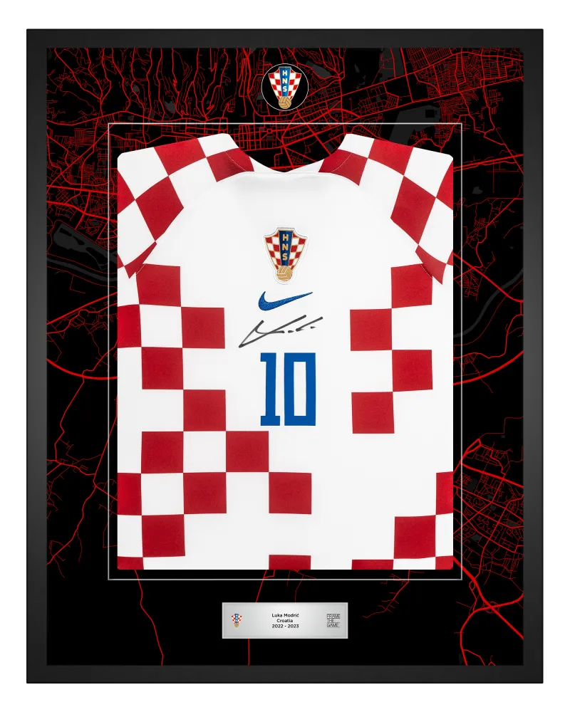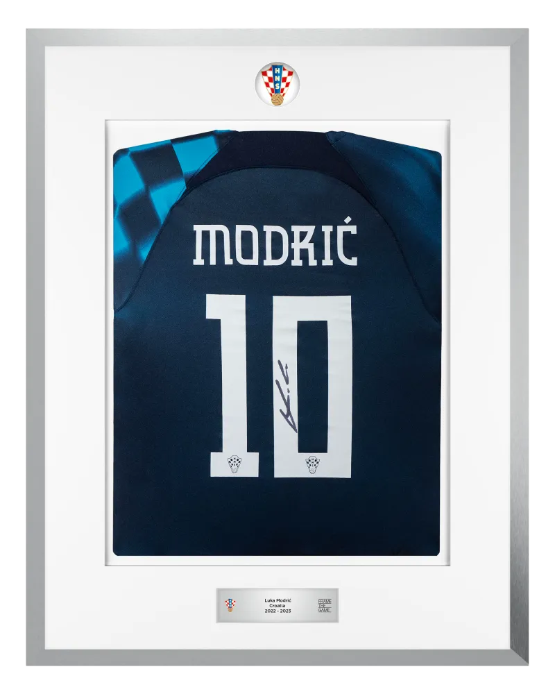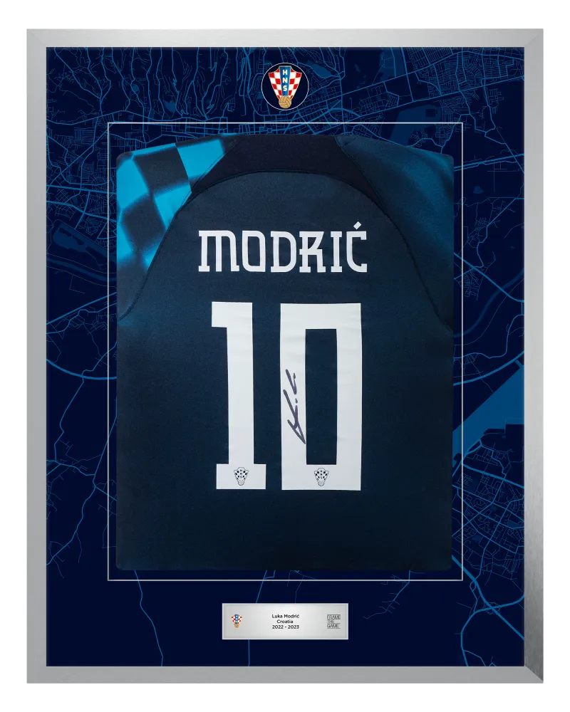 Uz kolekciju Luke Modrića, sadašnjem kapetanu hrvatske reprezentacije i dobitniku Zlatne lopte 2018. godine, pridružuju se Perišić, Kovačić, Gvardiol i Livaković - u ekskluzivnom izdanju koje dolazi u ograničenim količinama. Ovo je vaša prilika da posjedujete limitirano izdanje nogometnih dresova koje su Vatreni osobno potpisali, a zatim ih je uokvirio naš tim stručnih majstora.