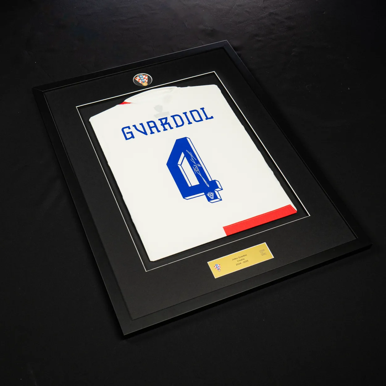 Potpisani dres Joška Gvardiola iz sezone 2024./25. utjelovljuje duh obitelji i zajedništva koji nadahnjuje Vatrene. S odvažnim, povećanim crveno-bijelim kvadratićima koji su srce prepoznatljivog hrvatskog izgleda, dres slavi nacionalni ponos i povezanost. Joškov potpis istaknut je na stražnjoj strani, preko njegovog broja, čineći ovaj dres jedinstvenim primjerkom koji izravno povezuje navijače s jednim od najprepoznatljivijih hrvatskih igrača.