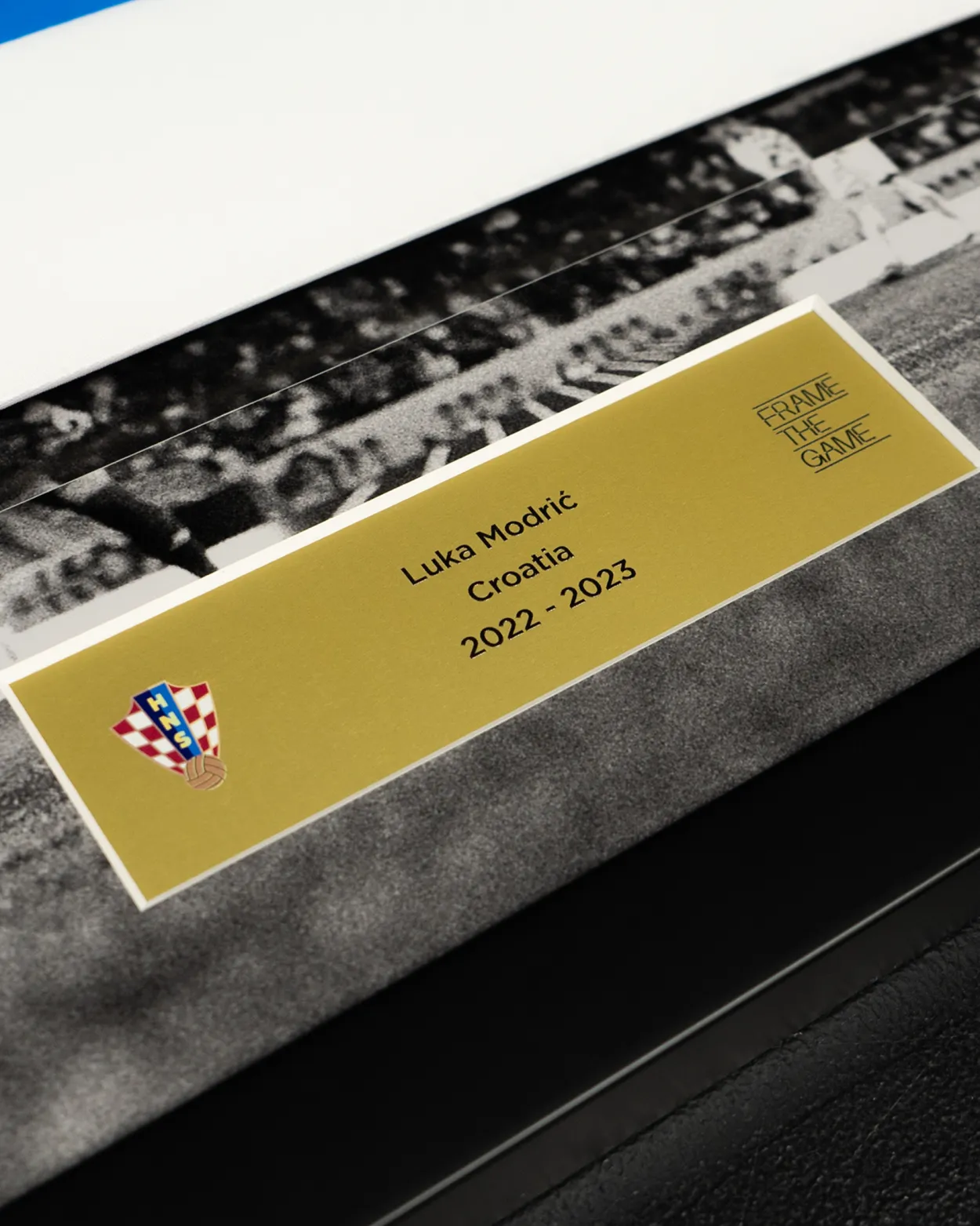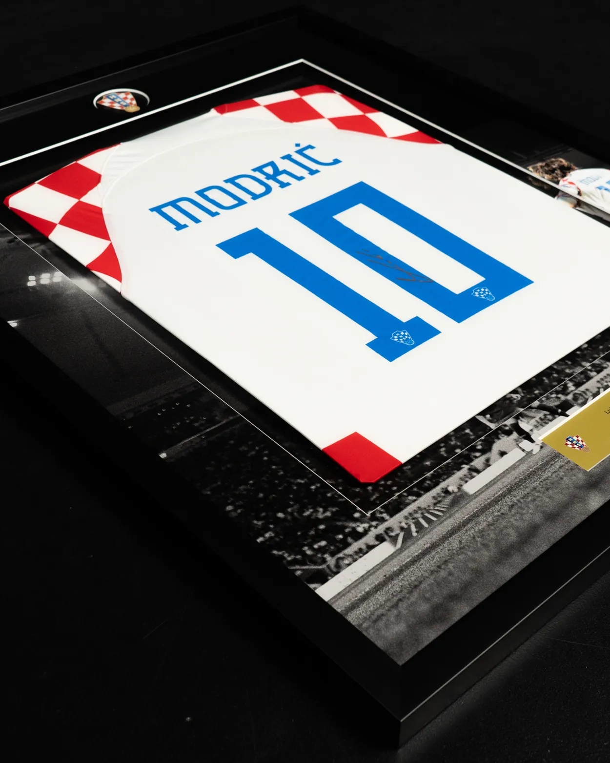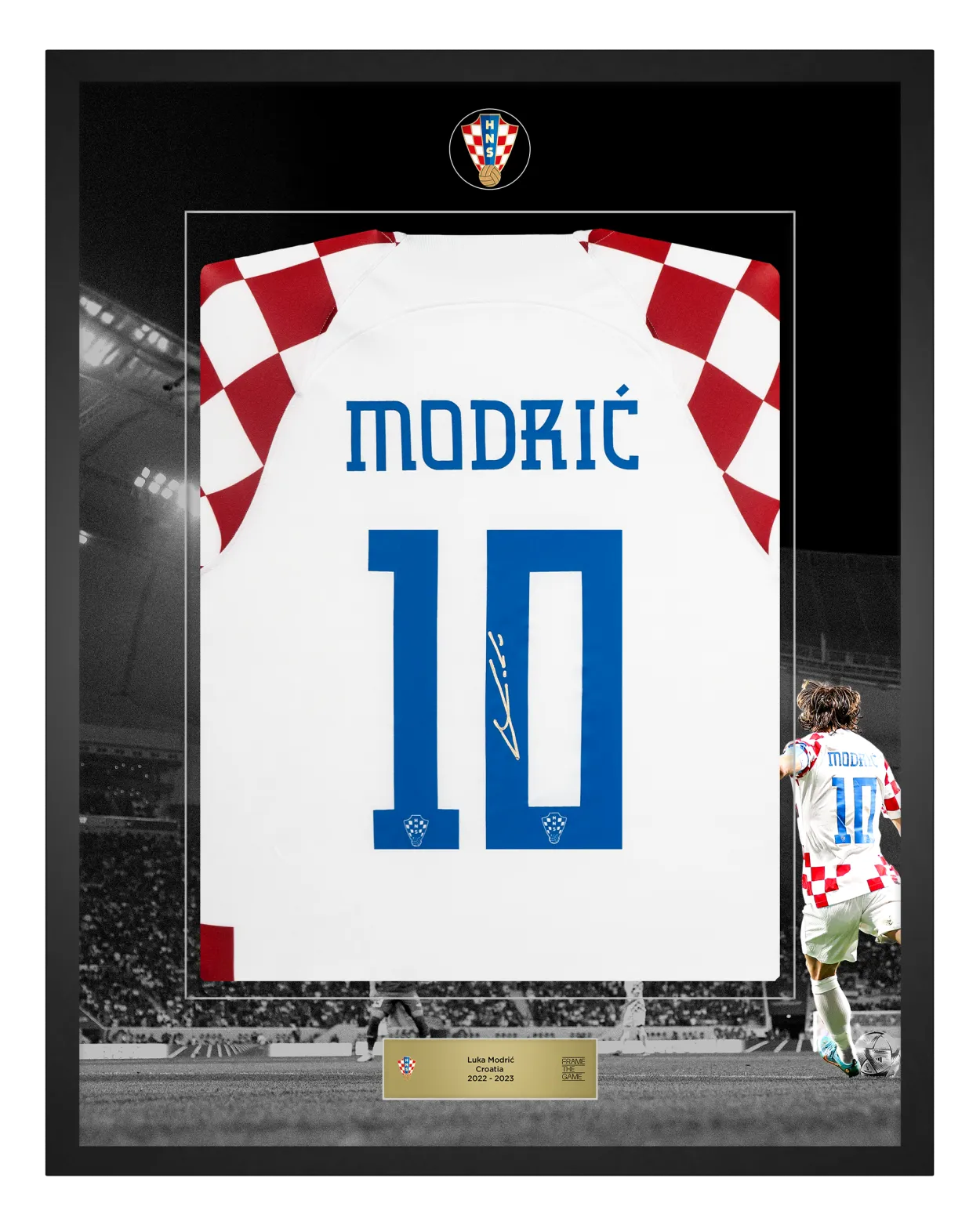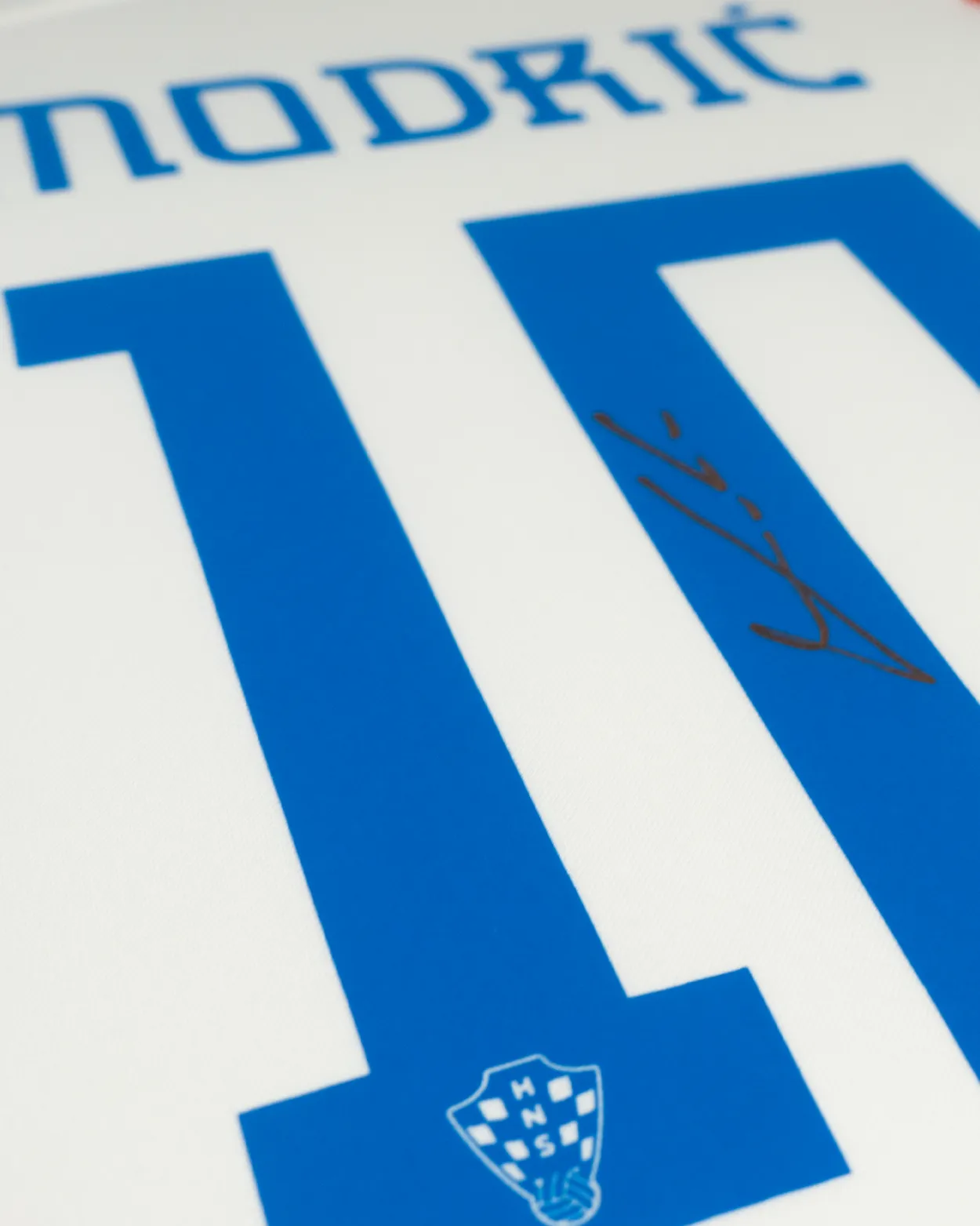 Potpisan od strane Luke Modrića, ovaj domaći dres Hrvatske za sezonu 2022-23 ima grb države reproduciran u uzorku šahovnice na tkanini. Prednja strana dresa odabrana je za izlaganje. Modrićev potpis nalazi se u središtu dresa, između njegovog broja i Nikeovog loga.