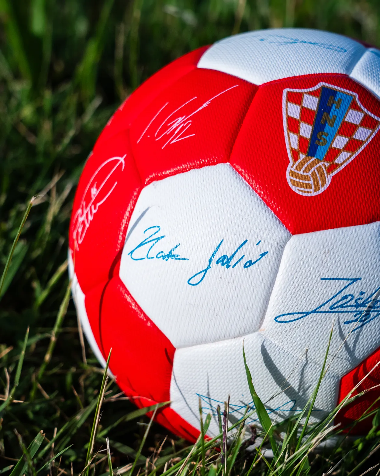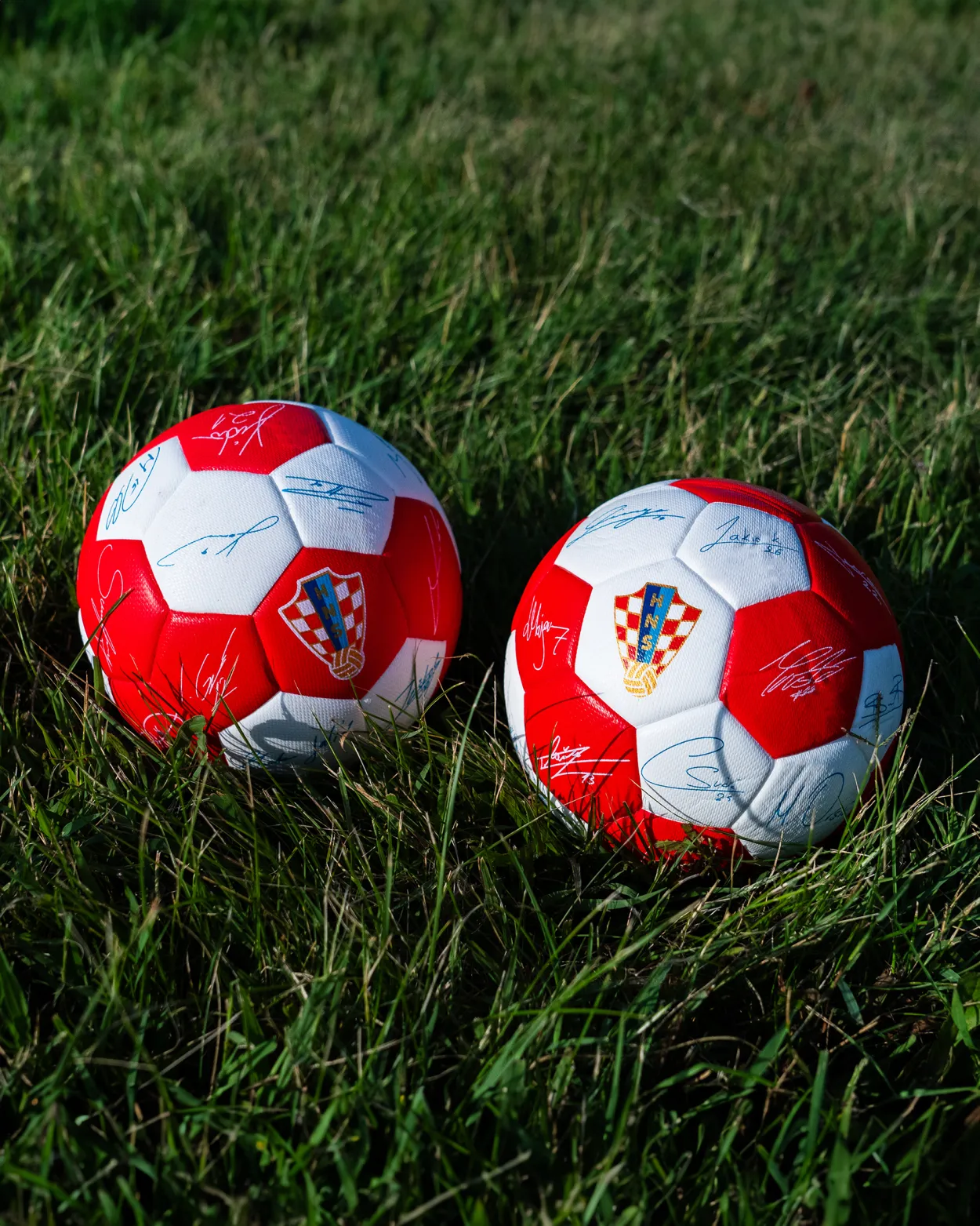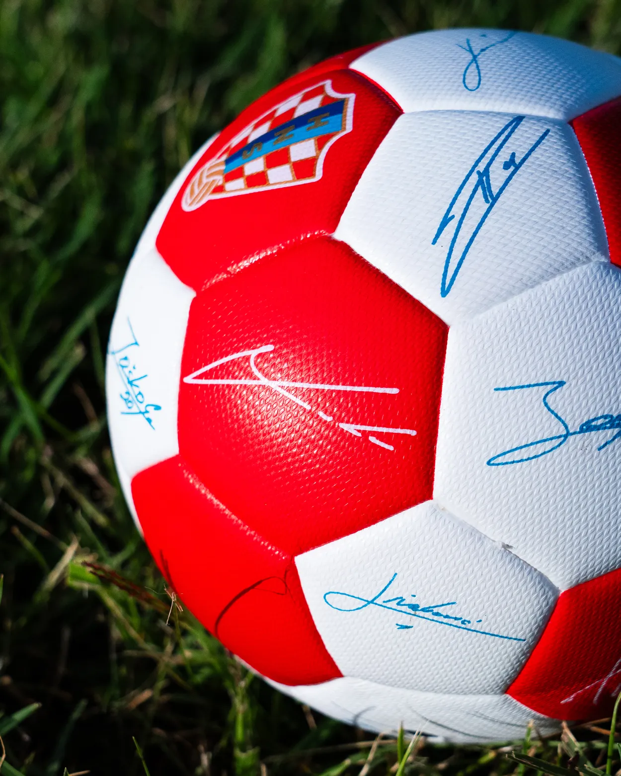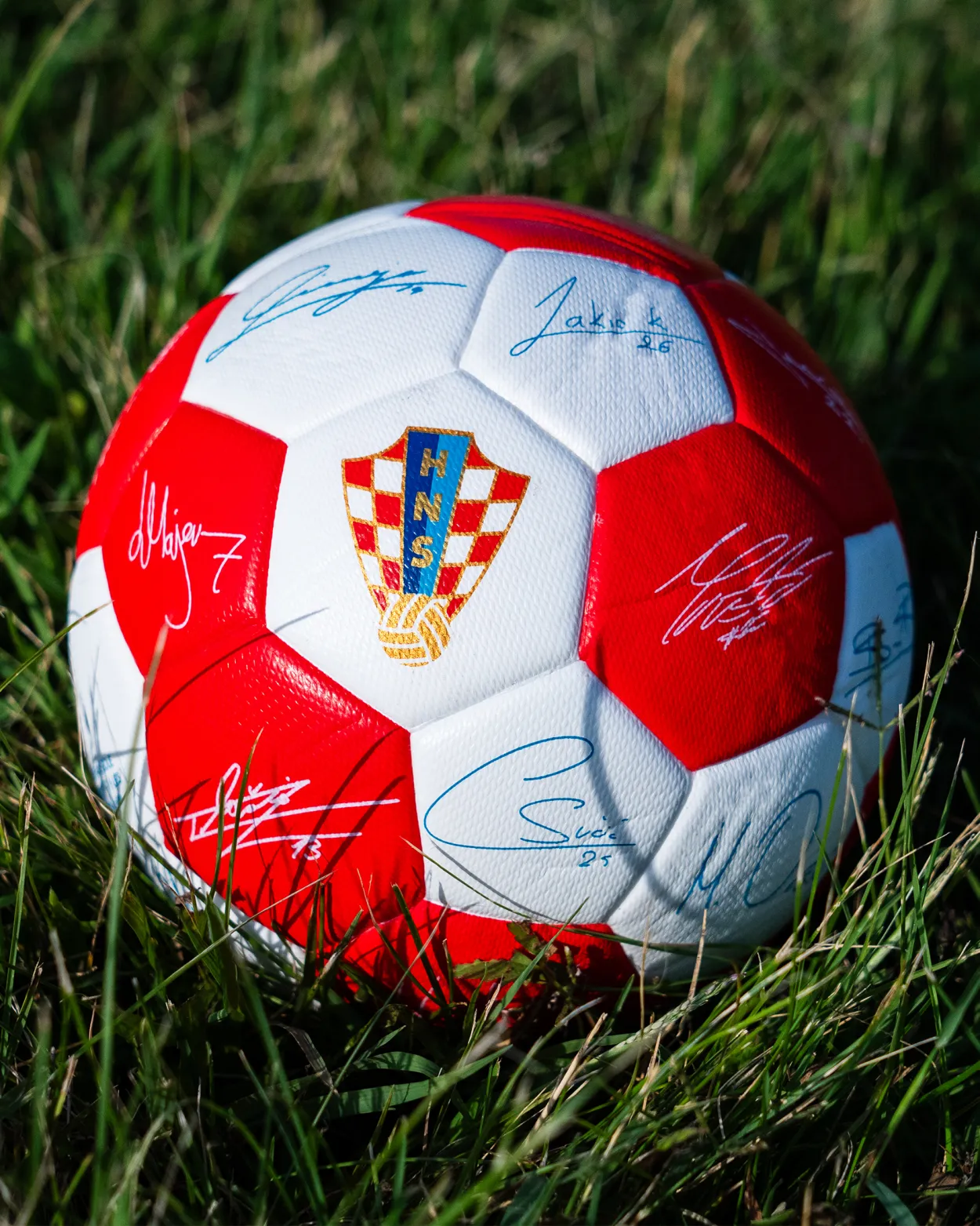 32 panela u živopisnim bojama domaćeg dresa hrvatske nogometne reprezentacije čine ovu loptu prepoznatljivom i atraktivnom. Na mini lopti nalaze se potpisi cijele A nogometne reprezentacije koja je osvojila broncu u Kataru, čime svaka lopta postaje komad nogometne povijesti. Ova mini lopta je više od obične igračke. Ona je sjećanje na jedan od najponosnijih trenutaka naše reprezentacije, a potpisi igrača na njoj daju dodatnu emotivnu vrijednost. Savršen poklon za nogometne entuzijaste svih generacija.