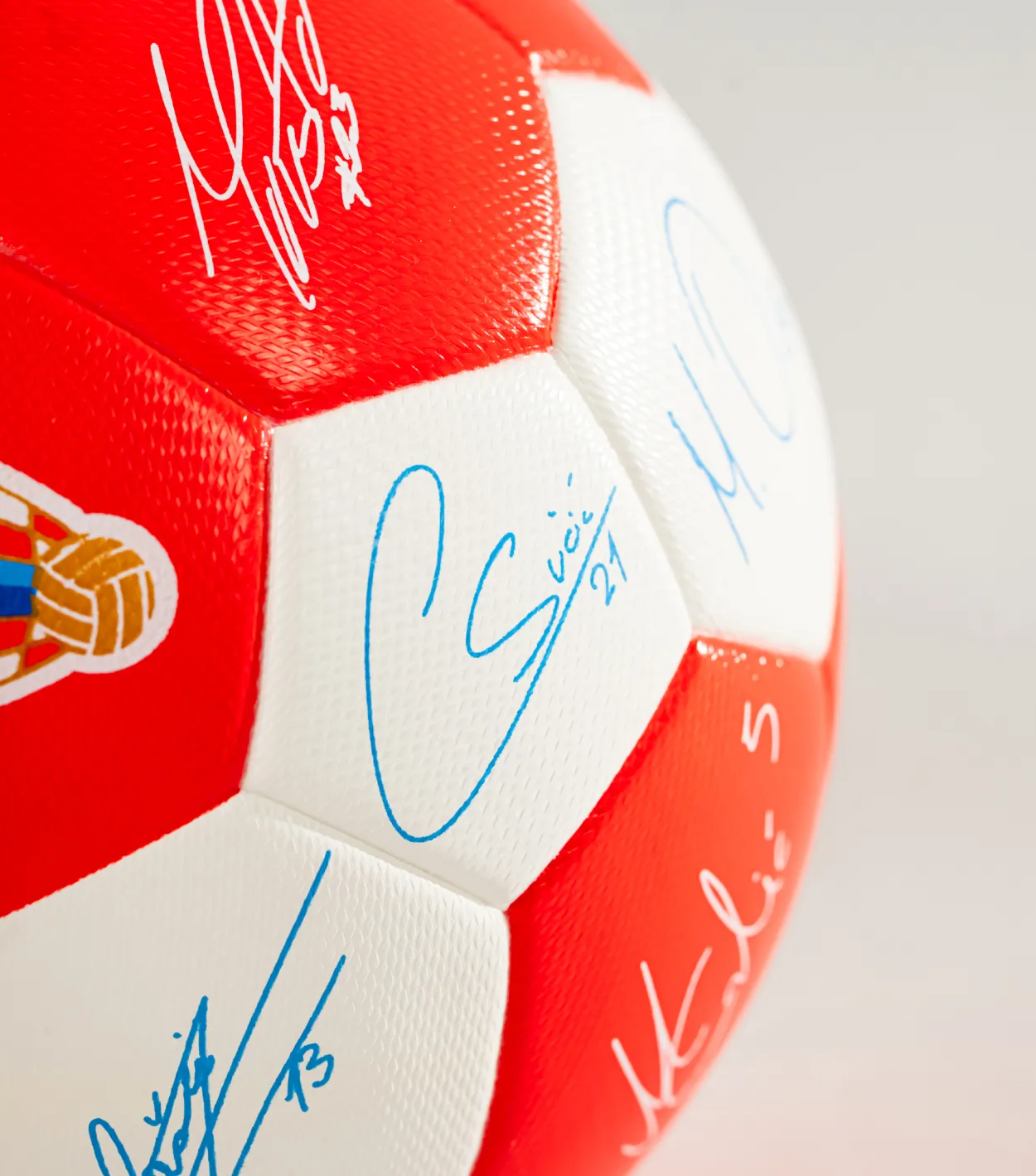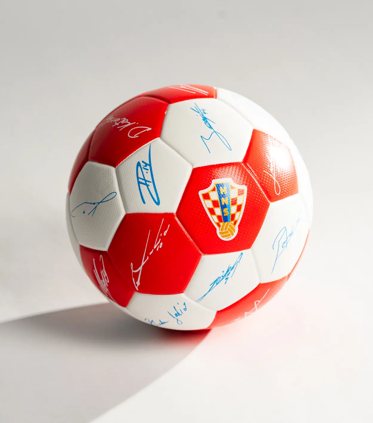 Izrađena od kvalitetne eko kože i promjera 15,4 cm, mini lopta jednako je prikladna za igru, tehničke vježbe ili kao dekorativni detalj. Klasičan dizajn s 32 panela u prepoznatljivom crveno-bijelom uzorku dodatno je ispunjen potpisima aktualnih A reprezentativaca, čime svaka lopta postaje jedinstven komad nogometne priče i poseban suvenir za sve ljubitelje Vatrenih.