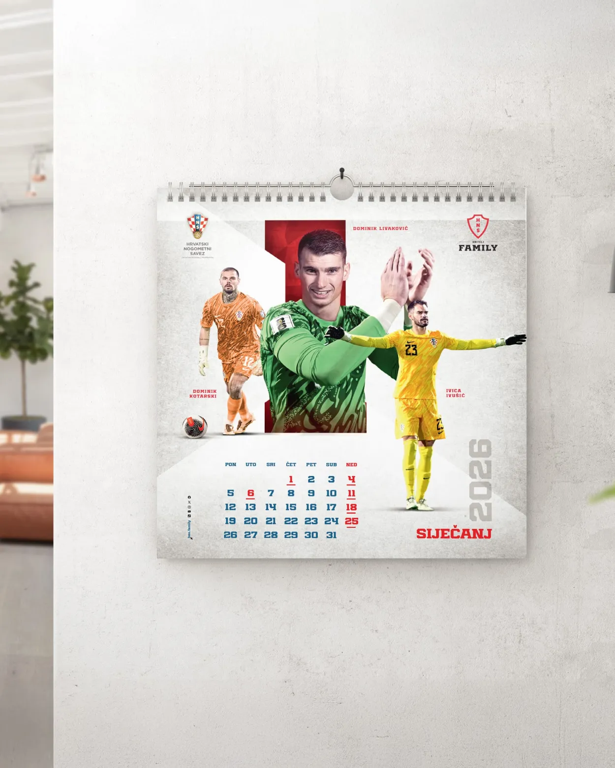 Uljepšajte svaki mjesec 2026. godine s Vatrenim zidnim kalendarom Hrvatskog nogometnog saveza! Svaki mjesec donosi vam jedinstvene fotografije Vatrenih iz 2025. godine, koje će vas podsjećati na nezaboravne trenutke s terena. Kalendar je savršen za sve ljubitelje nogometa i strastvene navijače hrvatske reprezentacije, a njegova praktičnost i estetičnost odgovara svakom domu ili uredu. Ne propustite priliku da posjedujte komadić nogometne magije na svom zidu. Naručite svoj primjerak danas i budite dio Vatrene obitelji tijekom cijele godine!