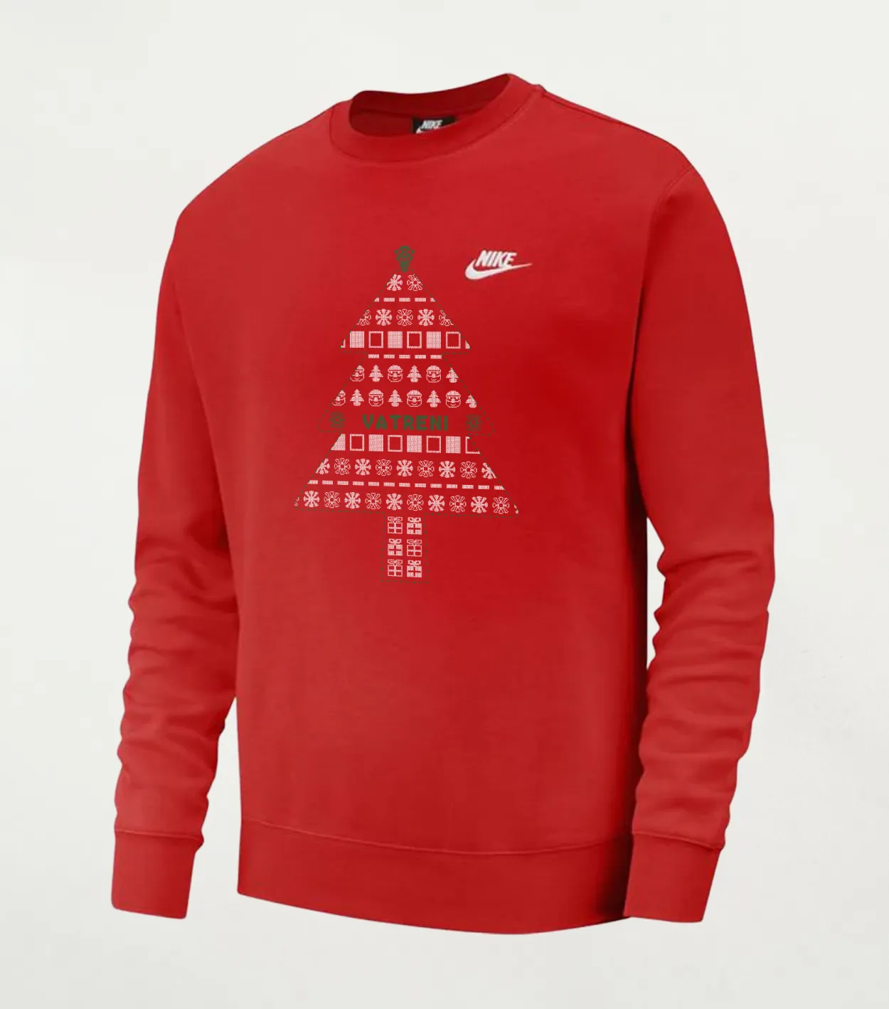 Majica dugih rukava “Drvce Vatreni” donosi prepoznatljiv blagdanski motiv božićnog drvca čiji je vrh ukrašen HNS grbom, dok se u središtu ističe natpis “Vatreni”. Izrađena od 80% pamuka i 20% poliestera, pruža ugodan osjećaj i toplinu tijekom svakodnevnog nošenja. Mali Nike Swoosh s natpisom “Nike” smješten je na lijevoj strani prsa. Ova majica kombinira navijački ponos i blagdanski duh u modernom i čistom dizajnu. Održavanje je navedeno na etiketi proizvoda.